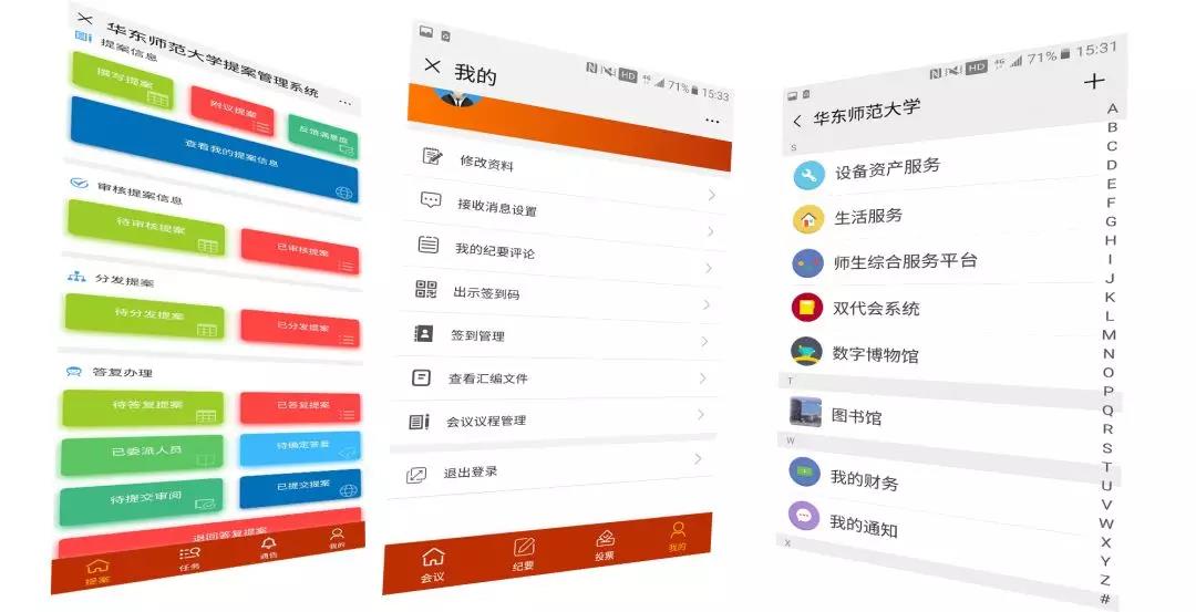 每位参会代表可以通过代表证背面的二维码扫码签到,并通过微信企业号进入会议系统浏览会议议程、座位图分布,代表团联系人可通过系统上传会议纪要,实时分享。此外,代表还可以随时通过PC端与手机端同步登陆提案系统,撰写提案、附议提案等,极大提高了提案处理效率。