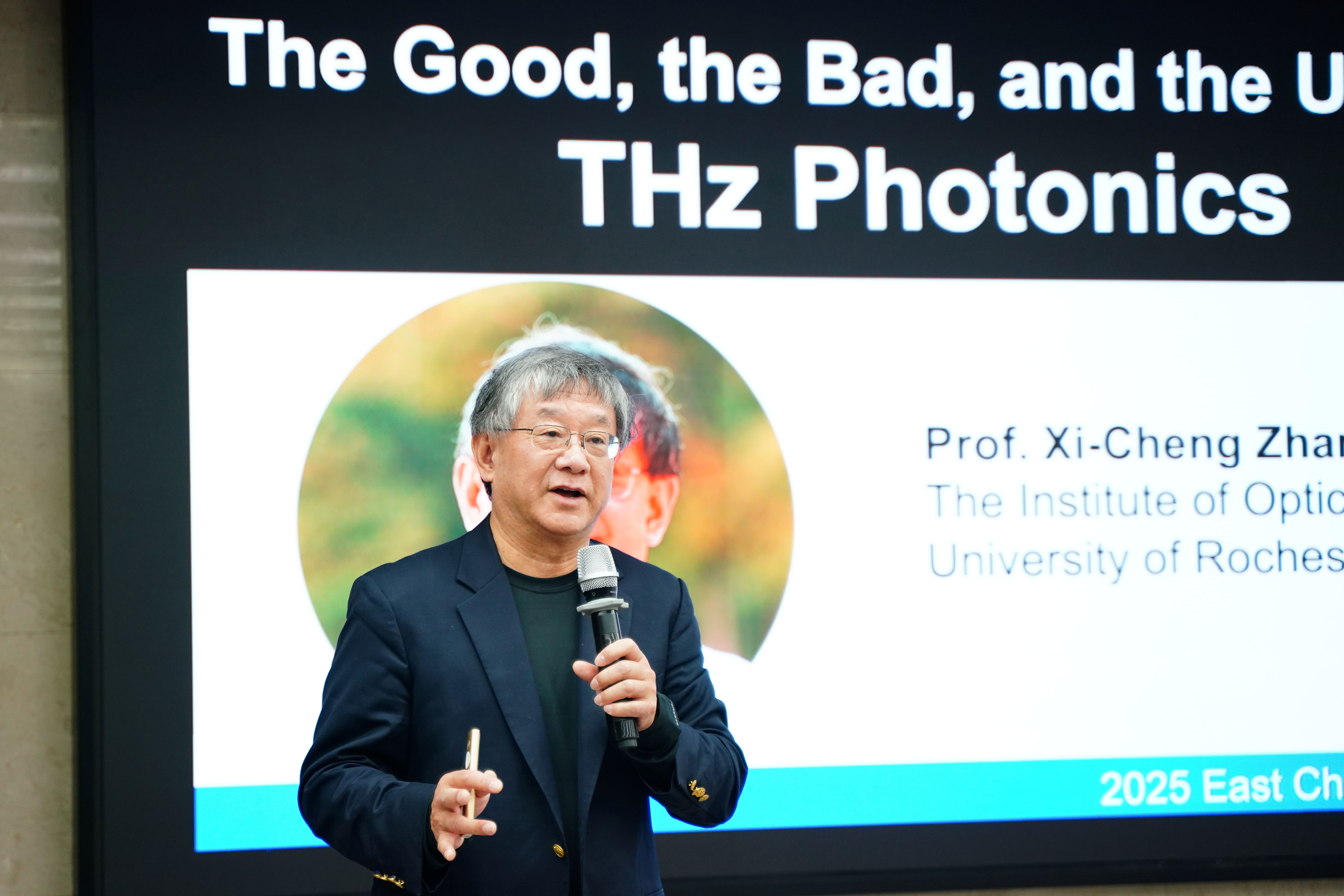 开幕式后,国际著名光子学专家、美国三大光学中心之一罗切斯特大学讲席教授、俄罗斯外籍院士、世界三大脉冲太赫兹高科技公司之一Zomega创始人Xicheng Zhang教授作主旨报告,阐述太赫兹波光子学领域从起步到在未来技术中不断扩展应用的广泛发展历程,并分享科学研究、人才培养及企业市场等方面经验。随后,上海理工大学鲍桥梁研究员深入剖析了受限空间内光与物质相互作用的复杂机制,为与会者提供了全新的研究视角。全球领先的光电混合算力提供商曦智科技于山山博士介绍了集成光子技术在计算领域的革命性突破,展示了曦智科技在这一领域的领先地位和未来发展方向。北京理工大学黄玲玲研究员则聚焦于基于超表面的新型成像与先进探测技术,分享了该技术在多个领域的创新应用。