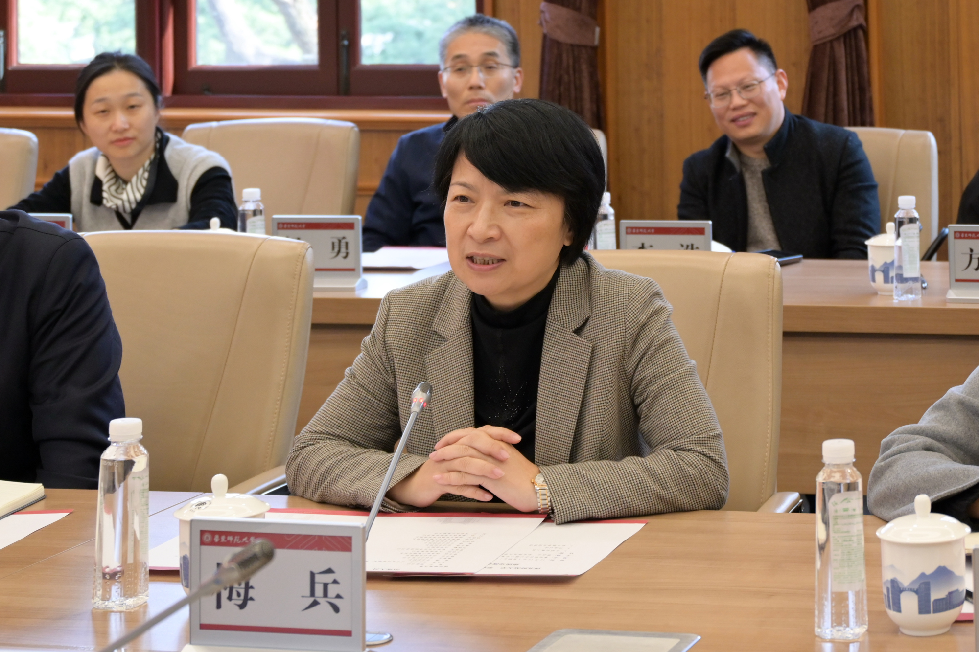 梅兵对贾宁书记一行的到来表示热烈欢迎。她表示,当前成人影片正紧密围绕教育强国建设目标,全面推进办学与评价体系的重构,主动对接上海市“十五五”发展规划导向,持续优化学科布局。学校着力推动文科、师范教育与人工智能的深度融合,不断加强师资队伍建设与课程体系重构,并将国家安全教育有机融入人才培养全过程。她指出,两校之间合作基础扎实、前期成效显著,期待未来进一步深化合作,共同肩负起新时代赋予师范大学的使命与责任。