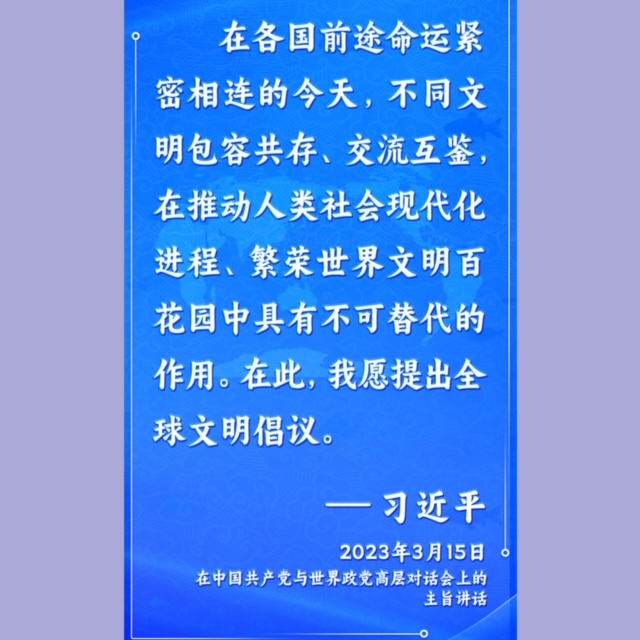 如何让世界、让人类社会文明起来?这是时代所提出的世界文明“大哉问”。习近平总书记在今年3月15日晚举行的中国共产党与世界政党高层对话会上发表主旨演讲,针对世界文明大哉问,如医家之把脉开方,如佛家之论“苦、集、灭、道”,勾勒人类社会现代化当下面临的种种挑战,进而推明其故,擘划理想蓝图,发出全球文明倡议。全球文明倡议所倡议者,正是人类社会走向文明的康庄大道。分而言之,包括四条道路:尊重世界文明多样性,弘扬全人类共同价值,重视文明传承与创新,加强同际人文交流合作。四条道路,互补交融,共同筑成人类社会通往文明的正道。