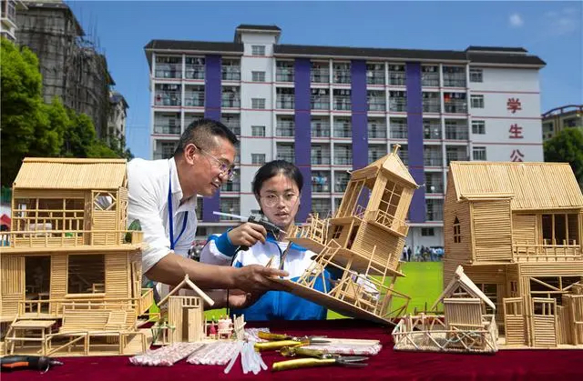 贵州省黔西市中等职业学校学生在老师的指导下进行手工制作现场实训