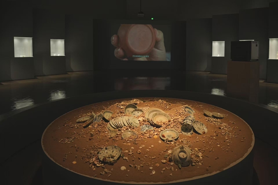 以泰兴号沉船装置为核心的“历史钩沉”,紧扣时间线索展示泉州博物馆历代德化陶瓷珍品,成为展览必要的“前情提要”,结合各类历史文献和影像记录等,全方位呈现德化瓷深厚的历史积淀。