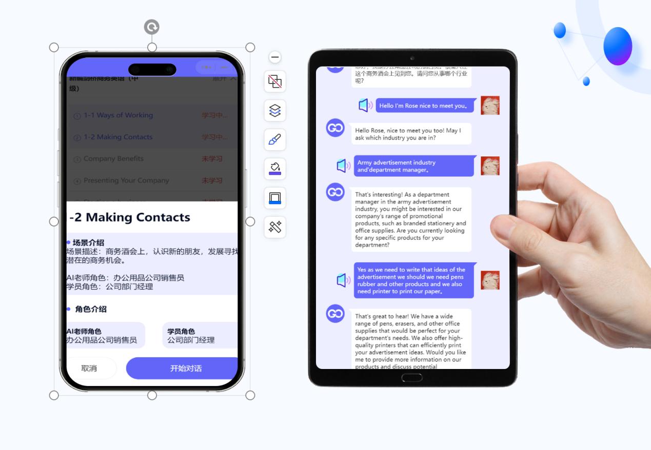 这样的情景对话彻底颠覆了传统英语学习模式。在这里,英语不再是孤立的单词和语法,而是解决问题的思维工具。学生们在点餐、购物、客户谈判等真实场景中,自然而然地锻炼了语言组织、逻辑表达和跨文化沟通能力。AI也不再是冰冷的答题机器,而是化身成为既有智慧又充满耐心的教练——它会记住学生之前的回答,在下一次对话中追问;能模拟不同角色进行提问,也会在学生表现出色时给予“Your pitch was very compelling!(讲得真精彩!)”的真诚鼓励。