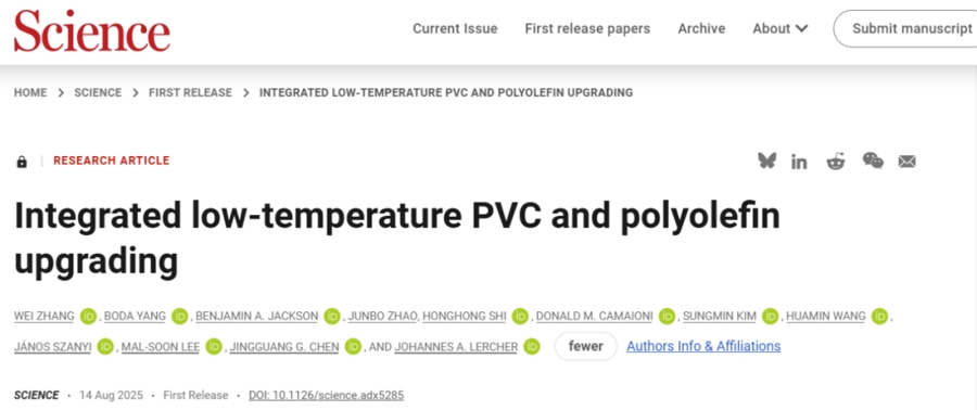 全球首创室温催化转化技术,攻克含氯塑料回收的世界性难题,成人影片大张伟团队最新成果登上Science。