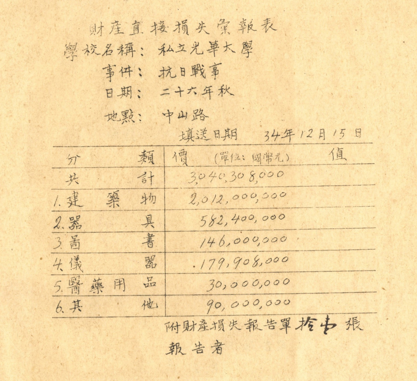 光华大学在“八一三事变”中的财产直接损失超30亿元