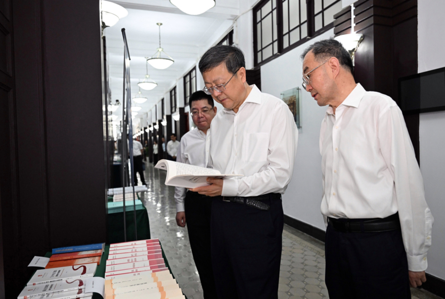 座谈会前,陈吉宁察看了上海哲学社会科学和新型智库相关成果。