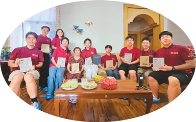延河讲师团成员与汪定炳烈士遗属张雪竹(左五)合影。(受访者供图)