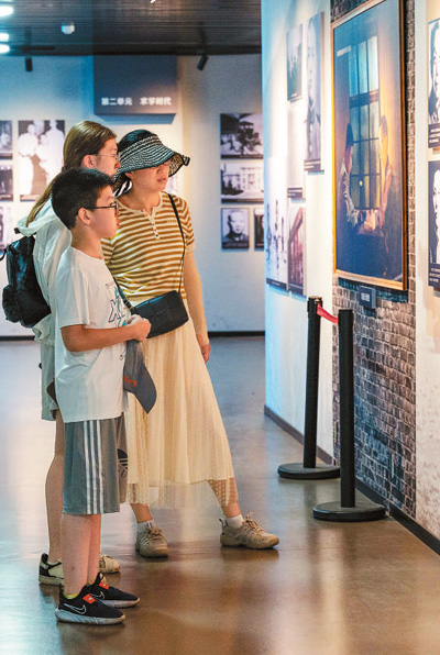 家长带孩子在陕西省西安市碑林区建国路西安事变纪念馆参观学习。(人民图片 张成摄)