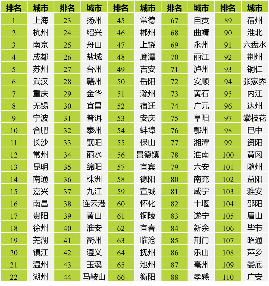 从指数研究报告看,在长江经济带各城市的协同发展能力中,上海、杭州、南京、成都、苏州、武汉、重庆、无锡、宁波、合肥位列前十强。相较于去年,角逐激烈的前十强城市中,苏州、宁波因其科技成果转化能力强,均上升1位;武汉、合肥虽科创实力显著,但转化能力欠佳,则后退1位。