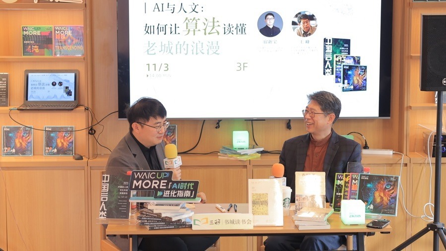 三联书城读书会聚焦“AI与人文” “AI能40秒生成一篇文章,设计师几小时产出100套方案,人的独特性在哪里?”三联书城读书会第十次活动:“AI与人文——如何让算法读懂古城的浪漫”近日在上海三联书店平江路店举办,华东建筑设计研究院有限公司副总经理、副总建筑师宿新宝在现场发问。 “我上小学时必须学珠算,现在谁还背算盘?现在还背一个算盘就是行为艺术了。”华东师范大学传播学院和中文系联聘教授、传播学院院...