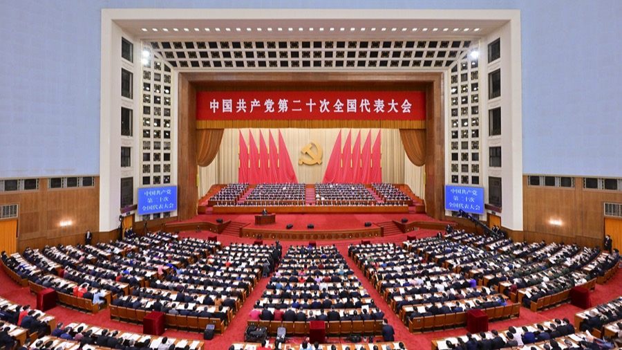 党的二十大是在我国进入全面建设社会主义现代化国家新征程的关键时刻召开的一次十分重要的会议。习近平总书记代表第十九届中央委员会所作的大会报告,是一篇闪耀着马克思主义思想光芒的光辉文献,是领航中国发展进步的行动指南,是谱写全面建设社会主义现代化国家崭新篇章的思想武器。 高举中国特色社会主义伟大旗帜的文献 统筹中华民族伟大复兴战略全局和世界百年未有之大变局,中国共产党必须认真回答好“举什么旗、走...
